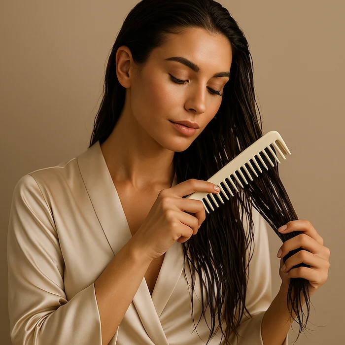 مرحله ۳: روتین بعد از حمام – شانه کردن و باز کردن گره‌ها