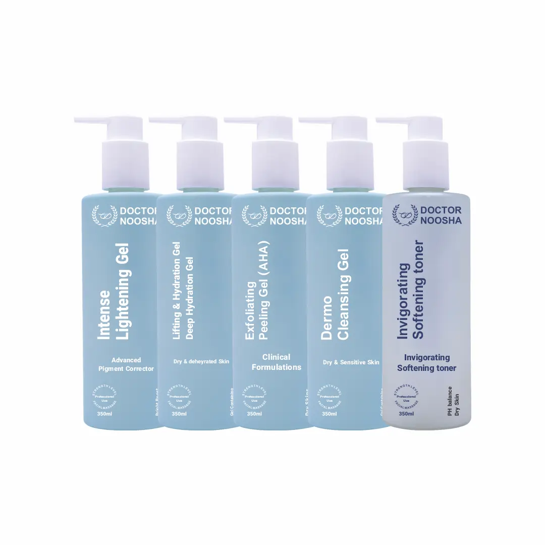 پکیج کامل مراقبت از پوست خشک دکتر نوشا شامل پنج محصول اختصاصی است که هر یک به نیازهای مختلف پوست خشک و حساس پاسخ میدهند: ژل درموکلینزینگ، ژل ضد لک و روشنکننده TXA، ژل آبرسان لیفتینگ، ژل پیلینگ AHA، و تونر اکتیوپلاس. این محصولات با ترکیبات گیاهی و آنتیاکسیدانی قوی، به آبرسانی، شفافیت، و سلامت پوست کمک میکنند.