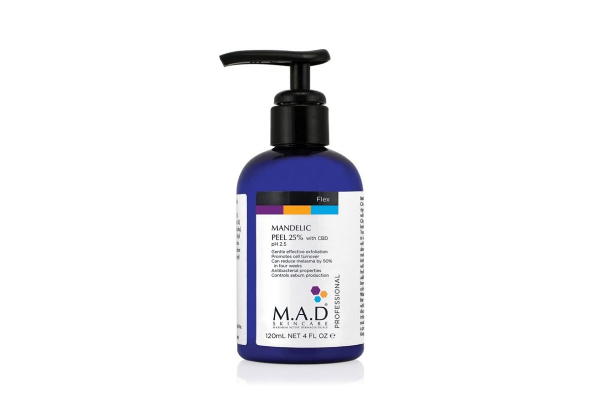 ماندلیک اسید ۲۵٪ از برند معتبر M.A.D (Med Advanced Derma) یکی از بهترین محصولات لایه‌برداری شیمیایی است که به طور خاص برای استفاده تخصصی در اسیدتراپی طراحی شده است. این محصول با فرمولاسیونی پیشرفته و ترکیبی از ماندلیک اسید و CBD، راهکاری مؤثر و حرفه‌ای برای درمان مشکلات مختلف پوستی مانند آکنه، بافت ناهموار پوست، هایپرپیگمانتاسیون و خطوط ریز و چین و چروک ارائه می‌دهد.